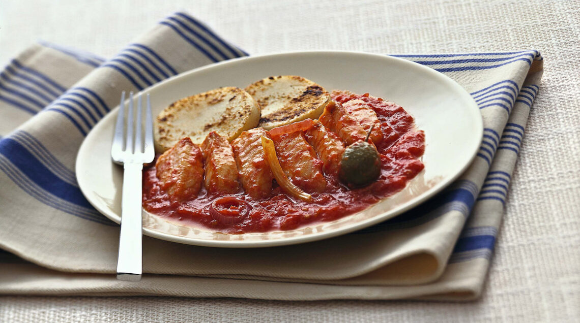 Pesce e polenta si sposano seguendo una tradizione consolidata e danno vita a un piatto unico rustico e gustoso, arricchito dal tocco sapido delle olive verdi