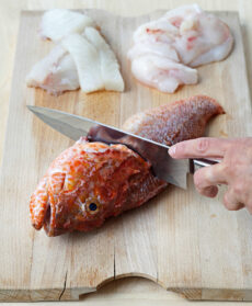 Unite il resto del pesce: i pezzi di scorfano, merluzzo e pescatrice, regolate di sale e cuocete per qualche minuto.
