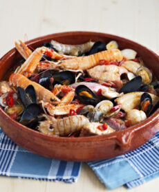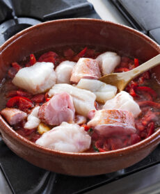 Preferite il tegame in terracotta perché diffonde il calore in modo uniforme ma non in modo eccessivo per non sfaldare il pesce. Allo stesso modo, non mescolate gli ingredienti, ma muovete delicatamente e spesso il tegame avanti e indietro.