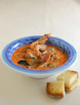 3) Prendi le fette di pane e posizionale al forno con funzione grill. Dopo averle tostate, distribuisci in ogni piatto fette di pane e il brodetto.