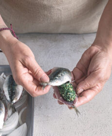 Un secondo di mare cotto in forno con semi di finocchio. Nel ripieno ricotta, erbette e fiocchi di avena