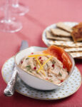3) Trita finemente l'aneto. Scalda una padella antiaderente e cuoci i trancetti di salmone su fiamma alta circa mezzo minuto per lato.