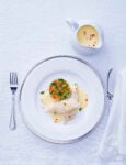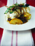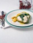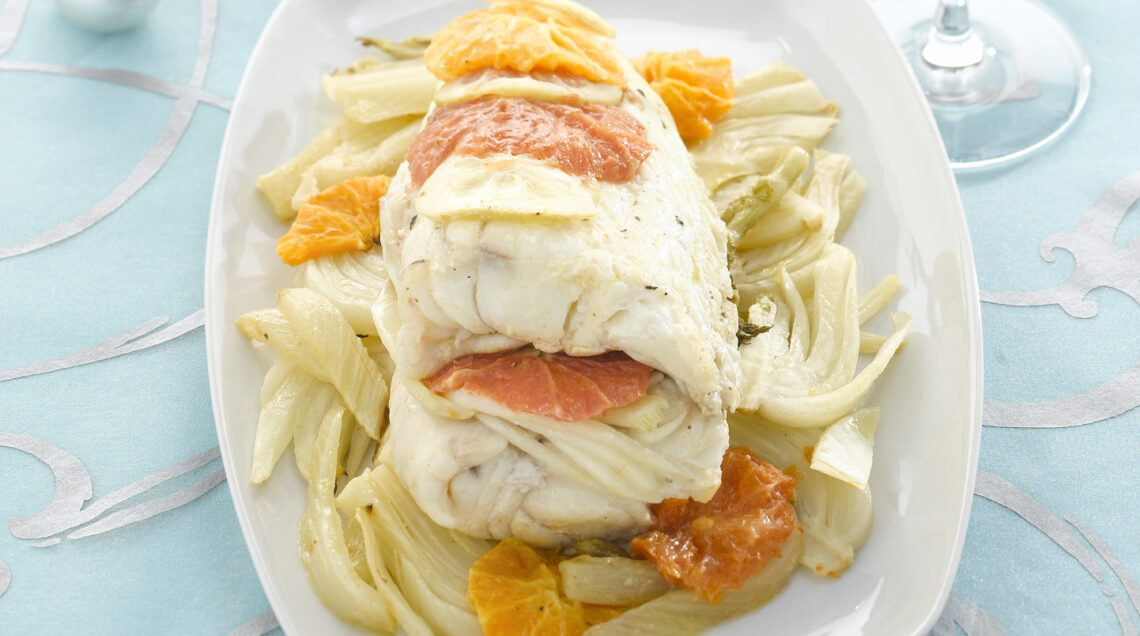 3) Elimina il cartoccio e il refe, adagia il pesce farcito sul piatto di portata e servi la pescatrice al forno con agrumi e finocchio.