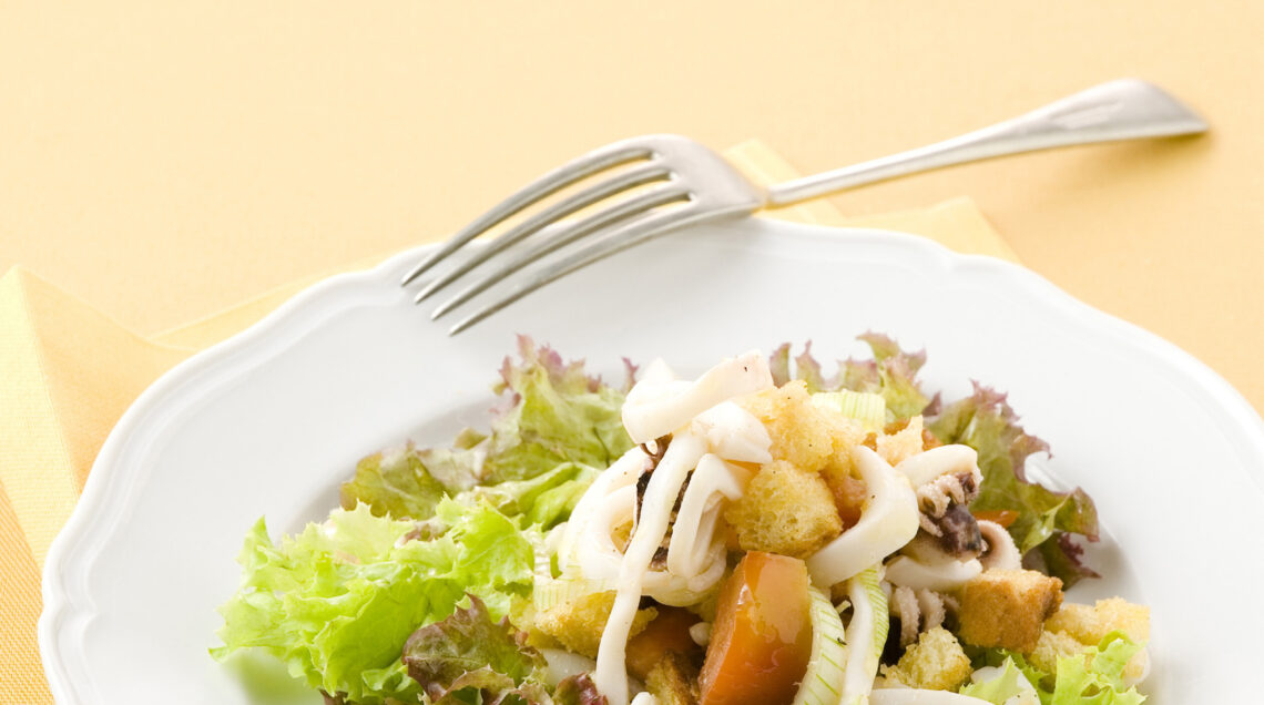 3) Taglia il pane a dadini e fallo tostare per qualche istante a fuoco vivo in una padella senza condimento. Mescola il pane e le verdure alle seppioline tiepide e condisci con 3 cucchiai di olio, il succo del restante limone, sale e pepe.