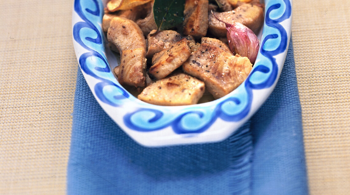 Un secondo piatto di mare semplice da realizzare ma dall’effetto sorprendente: ecco cos’è lo spezzatino all’alloro con chips di patate novelle. All’olfatto questo piatto si presenta elegante e raffinato, grazie al sentore di alloro che smorza il profumo del pesce spada, molto più deciso e intenso. Le chips di patate novelle, gustose e croccanti, completano il piatto.
