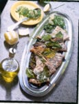 2) Unisci le olive, bagna con il vino, regola di sale, pepa e copri. Dopo 5 minuti leva il coperchio e cuoci a fiamma viva per 10 minuti, finché il sughetto si sarà addensato.