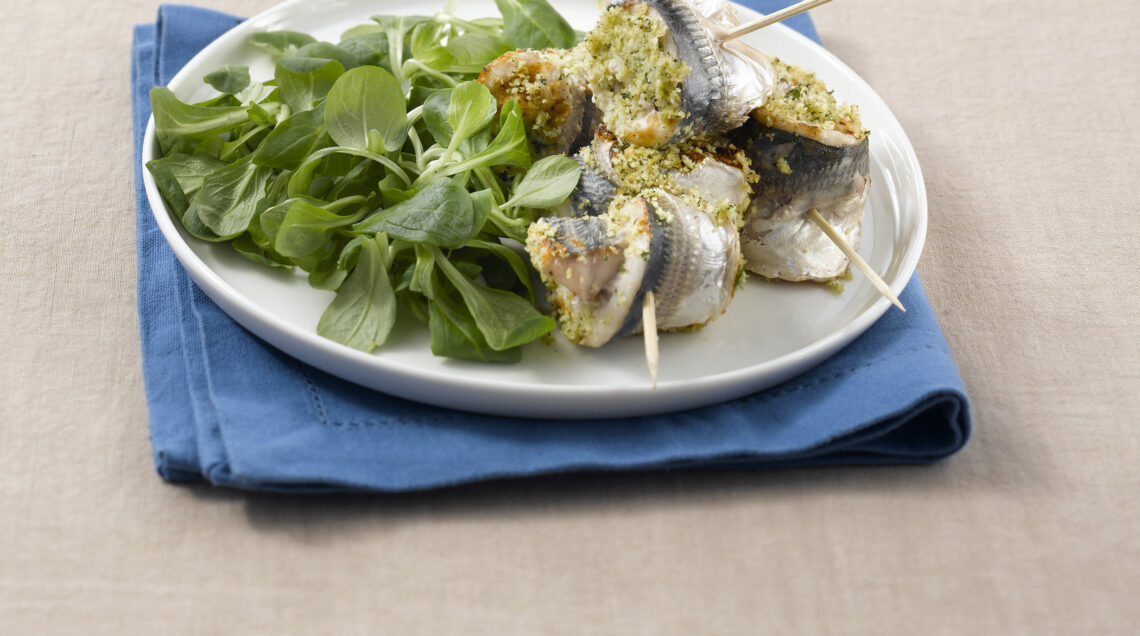 3) Togli gli spiedini dalla griglia, passali nel trito preparato e servili subito ben caldi accompagnando con un'insalatina di stagione.