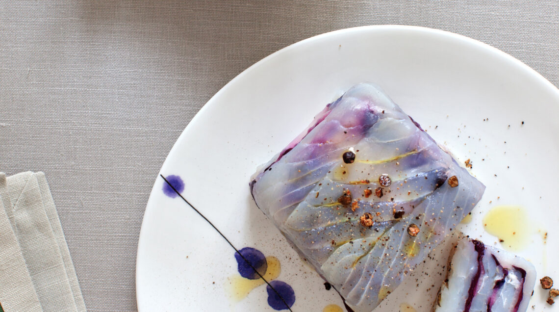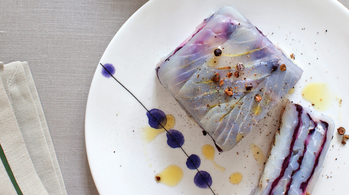Il pesce salato si mette in forma: grazie al radicchio rosso, regala sfumature quasi iridescenti e al momento del servizio sorprende con un burro aromatizzato