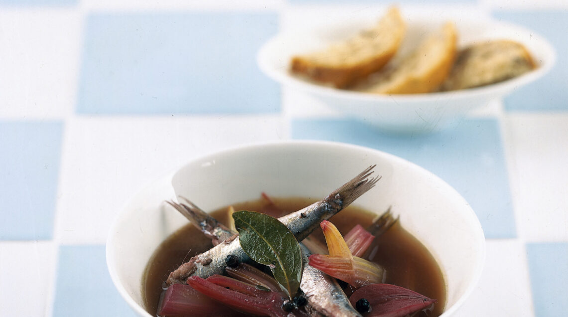 3 Quando il sedano è ancora al dente, aggiungete le alici, mescolate delicatamente per non spezzarle e cuocete per 5 minuti. Togliete la zuppetta dal fuoco, fatela intiepidire e servitela accompagnata, se volete, da crostini di pane.