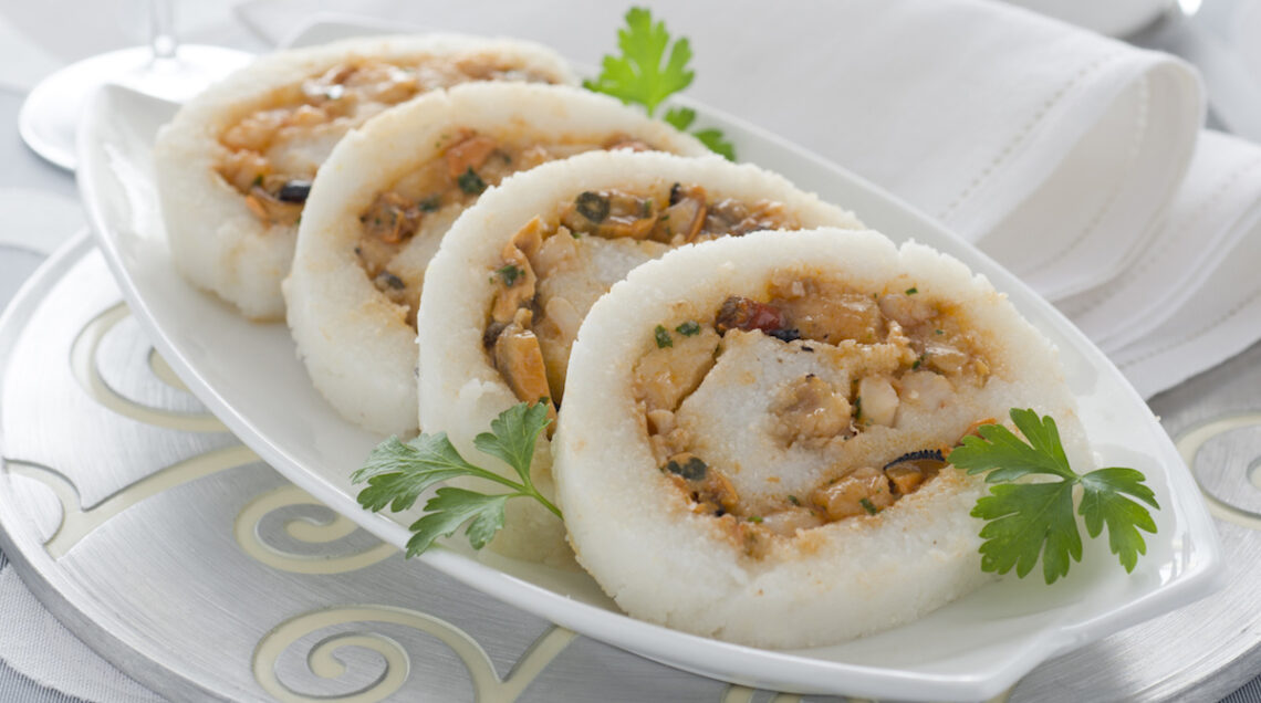 Questo scrigno di polenta bianca racchiude un delicato mix di molluschi, crostacei e pesce e diventa un secondo piatto rustico-chic
