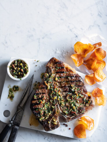 Seguite lo chef Stefano Grandi anche nella preparazione di una succulenta costata di manzo cotta sulla griglia e abbinata a peperoni caramellati e salsa chimichurri.