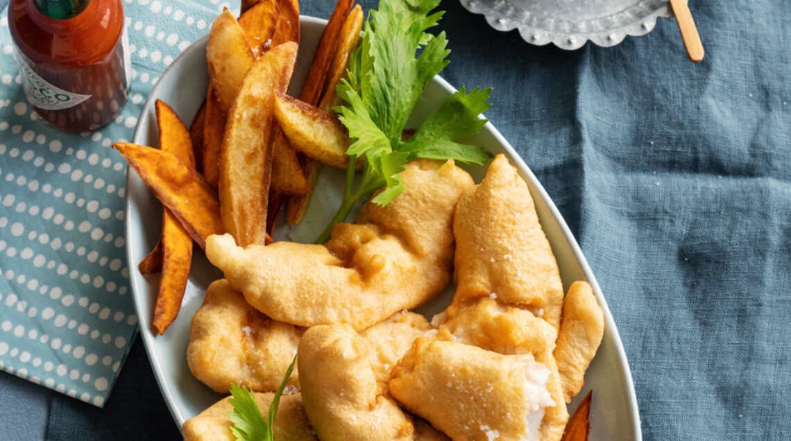 Il fish and chips è un piatto tipico della cucina britannica, uno degli street food più popolari. Il pesce a filetti, passati in pastella e fritti, è accompagnato da bastoncini di patatine fritte e maionese. Le varianti però sono ormai parecchie, qui vi proponiamo la versione con pastella alla vodka e la maionese Bloody Mary, insaporita con gli ingredienti principali dell'omonimo cocktail a base di succo di pomodoro condito e vodka.