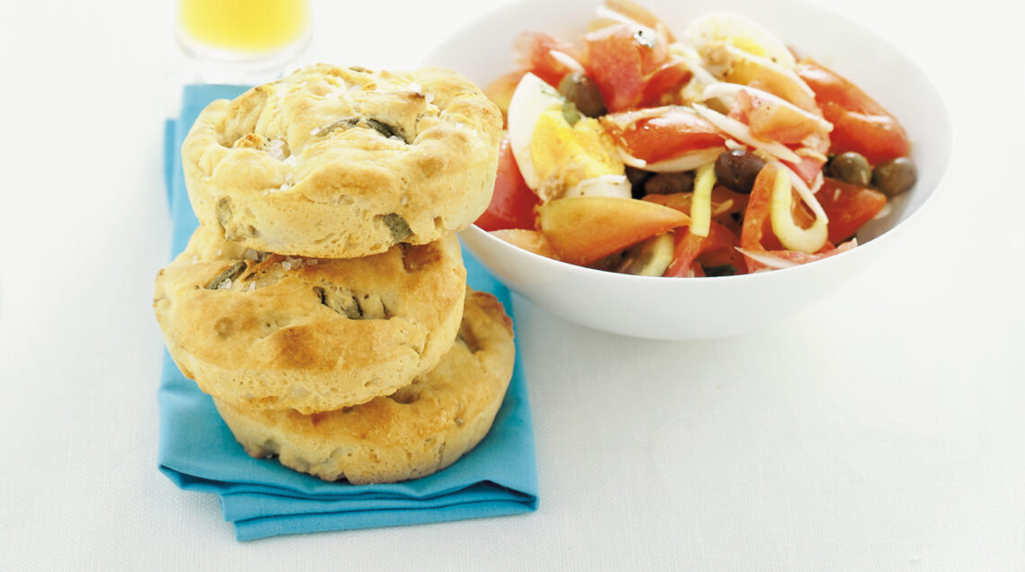 6) Nel frattempo prepara il condiglione. Taglia le verdure, unisci uova, tonno, olive, qualche foglia di basilico e condisci con 4 cucchiai di olio, 1 di aceto, sale e pepe nero.