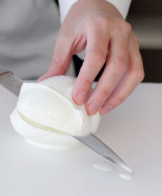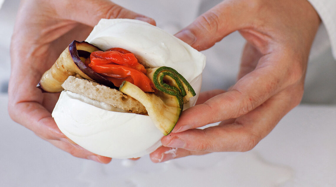 Per apprezzarla appieno, va servita rigorosamente a temperatura ambiente e consumata entro 2 giorni dal confezionamento. Si trova nella classica forma a sfera, a treccia e a bocconcini. È perfetta per proposte gourmand come la nostra o creative come la millefoglie di melanzane, il panino con tartare di gamberi rossi e le girandole di mozzarella.