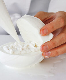 La mozzarella di bufala ha tratti distintivi unici: è liscia, lucente, compatta al taglio con una leggera sierosità dal gradevole profumo di fermenti lattici. E dal gusto inimitabile, che predilige elaborazioni semplici.