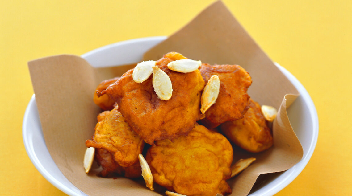 Una ricetta emiliana preparata con la zucca, il parmigiano e i grissini: queste dorate e croccanti frittelle sono buone a merenda, ma anche per la festa di Halloween. Un pizzico di lievito aiuta l'impasto a diventare gonfio e soffice.