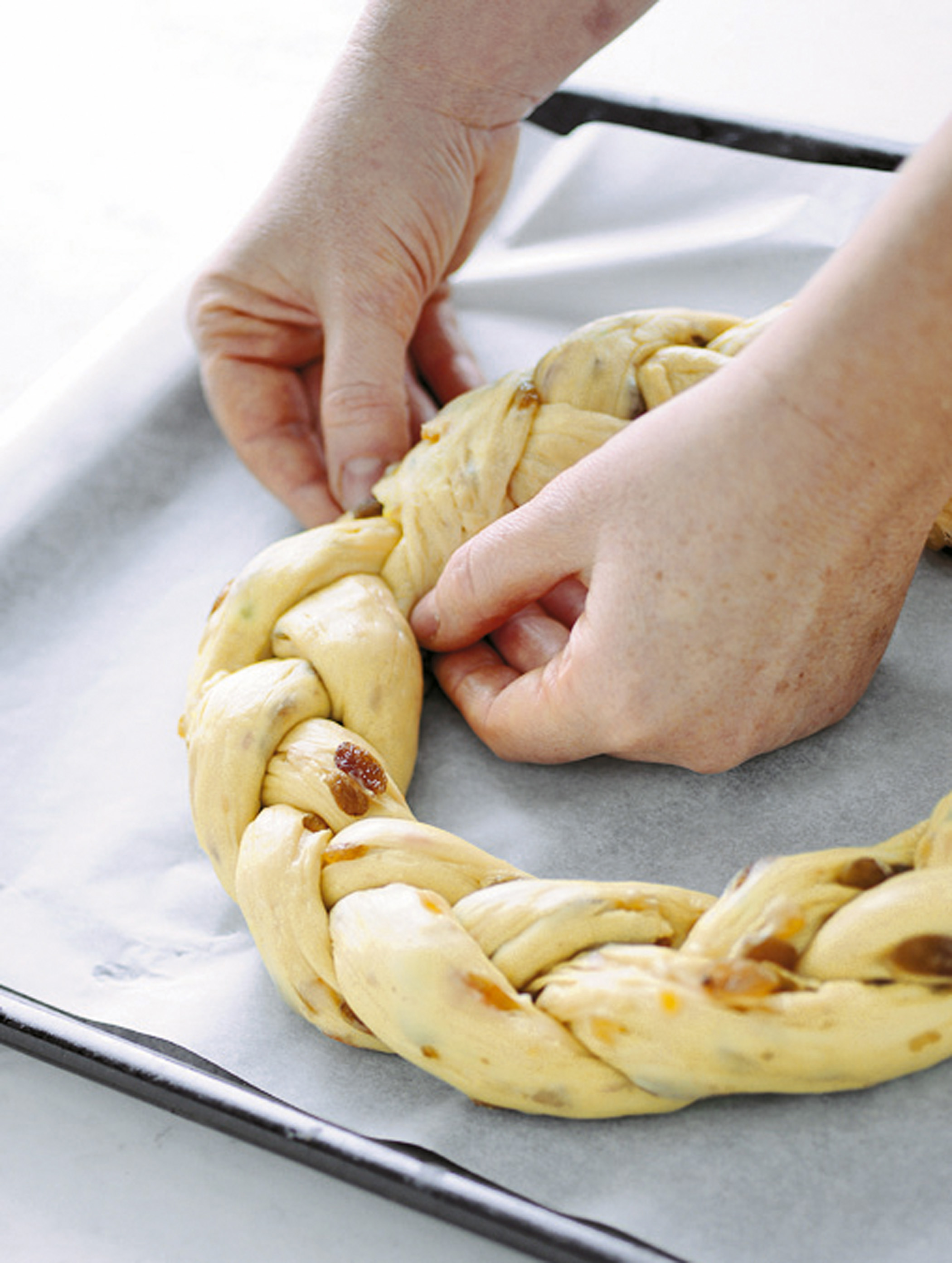 1) Elimina il sacchetto e spennella la ghirlanda con l’uovo sbattuto rimasto.