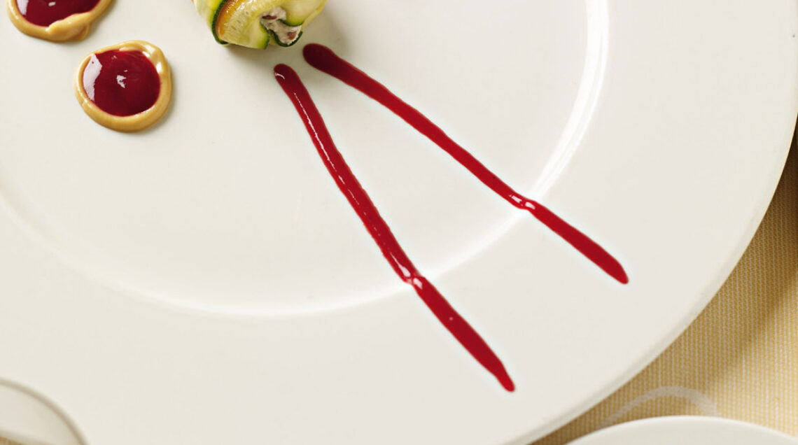 9) Appoggia gli involtini sul piatto e disegna le ali della farfalla con la maionese e la salsa di lampone.
