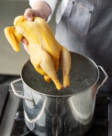 Dalla cottura del pollo si può ricavare un ottimo brodo, da riutilizzare in altre ricette, anche semplici come la preparazione di salse, creme, besciamella, maionese.