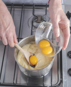 Sgusciate le uova separando tuorli e albumi e incorporate i tuorli alla besciamella, uno alla volta.