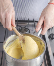 Mescolate bene con un cucchiaio di legno, trasferite il composto in un'ampia ciotola e lasciatelo raffreddare completamente.