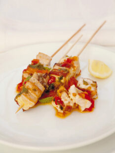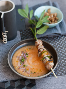 Spiedini di agnello e albicocche secche con zuppetta di melone