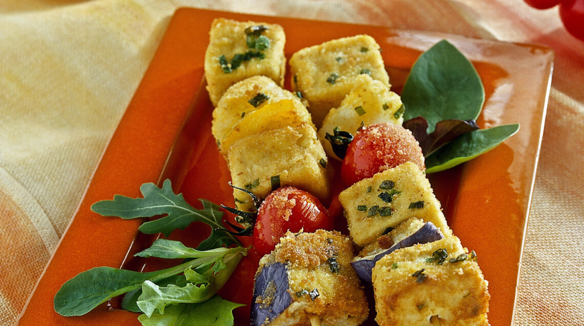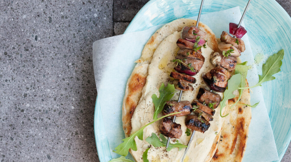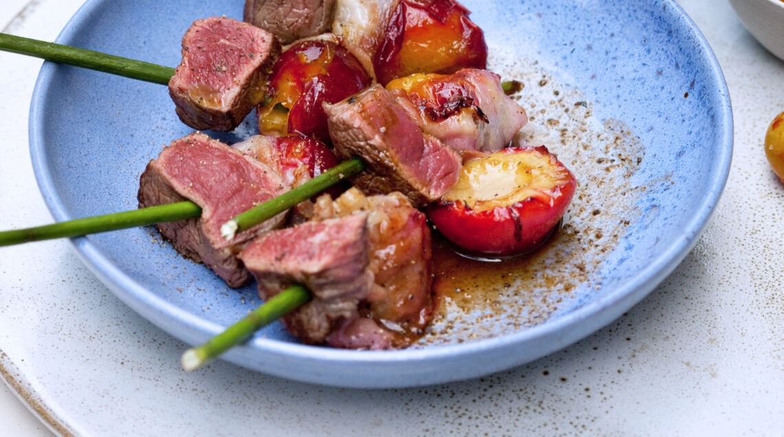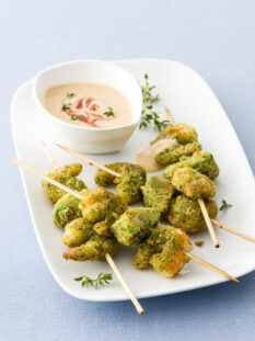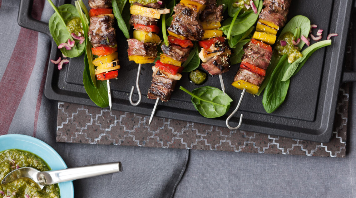 Spiedini di vitellone e peperoni con pesto di erbe e acciughe