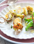 3) Sgocciola i pezzetti di carne dalla marinata e infilali su tanti spiedini, alternandoli alle albicocche ammorbidite e alle foglie di alloro.