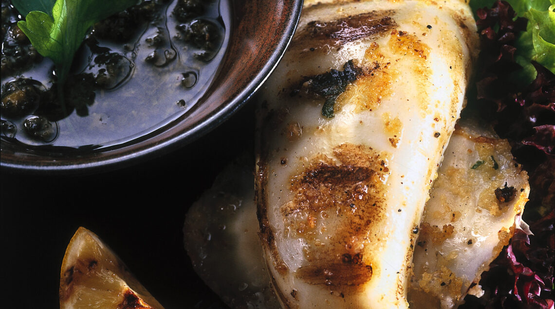 3 Allineate i calamari in una teglia, spennellateli con olio e succo di limone e cuoceteli sotto il grill del forno per circa 20 minuti.