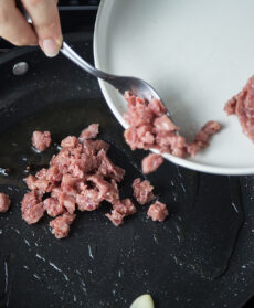 3. Quando anche il cotechino sarà pronto, taglialo a fette e poi a cubetti, oppure sbriciolalo in una ciotola capiente. Metti sul fuoco una padella con una goccia di olio, uno spicchio di aglio e 1 chiodo di garofano, falli soffriggere per un paio di minuti e aggiungi il cotechino sbriciolato, fai saltare a fiamma vivace e sfuma con il vino bianco. Continua a far saltare fino a quando non si sarà assorbito tutto il liquido, poi togli dal fuoco.