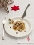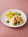 4) Servi i fagottini con polpettine alla menta con i pomodori a dadini conditi con 2 cucchiai d'olio, sale, pepe e il basilico rimasto tritato.