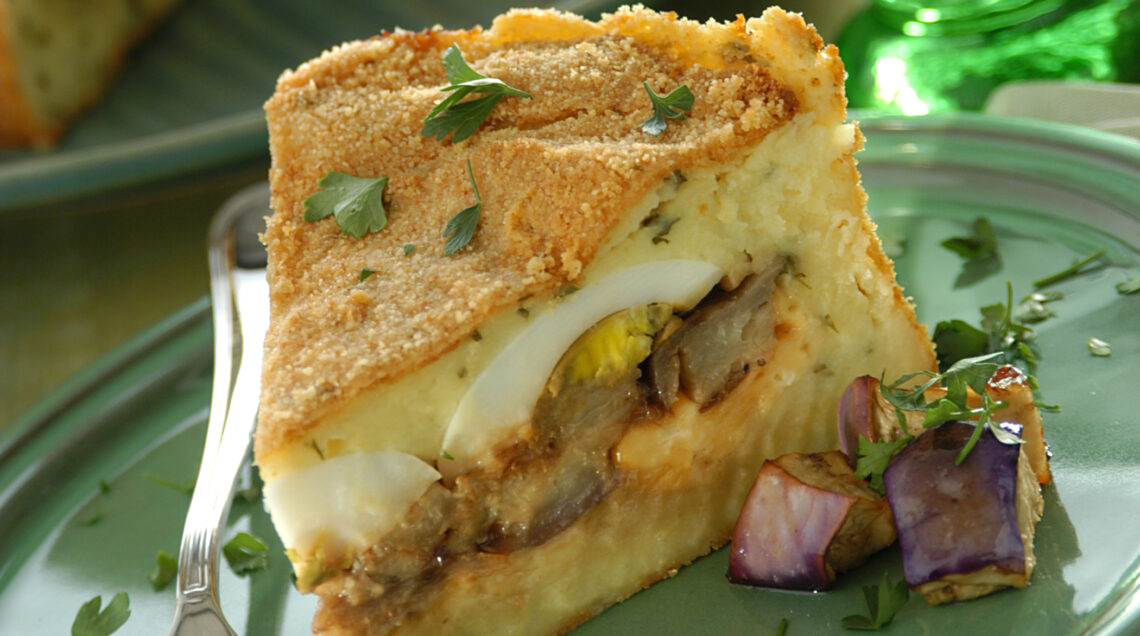 4) Spennella con 2 cucchiai di olio uno stampo a cerniera di 22 cm, cospargilo con metà del pangrattato, stendi sul fondo metà del composto di patate, coprilo con il primosale a tocchetti, le melanzane e le uova sode; termina con le patate e il pangrattato rimasti, condisci con un cucchiaio di olio e cuoci il gattò in forno caldo a 200° per 50 minuti.