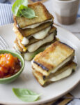 4) Comprimi gli ingredienti, trasferiscili nei piatti e toglie delicatamente i coppapasta. Completa con i pomodorini infornati, un filo d'olio e altra ricotta grattugiata.