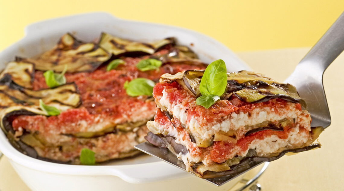 4) Alterna gli strati fino a esaurire gli ingredienti, poi passa la parmigiana di melanzane leggera alla ricotta in forno a 180° per 30 minuti.