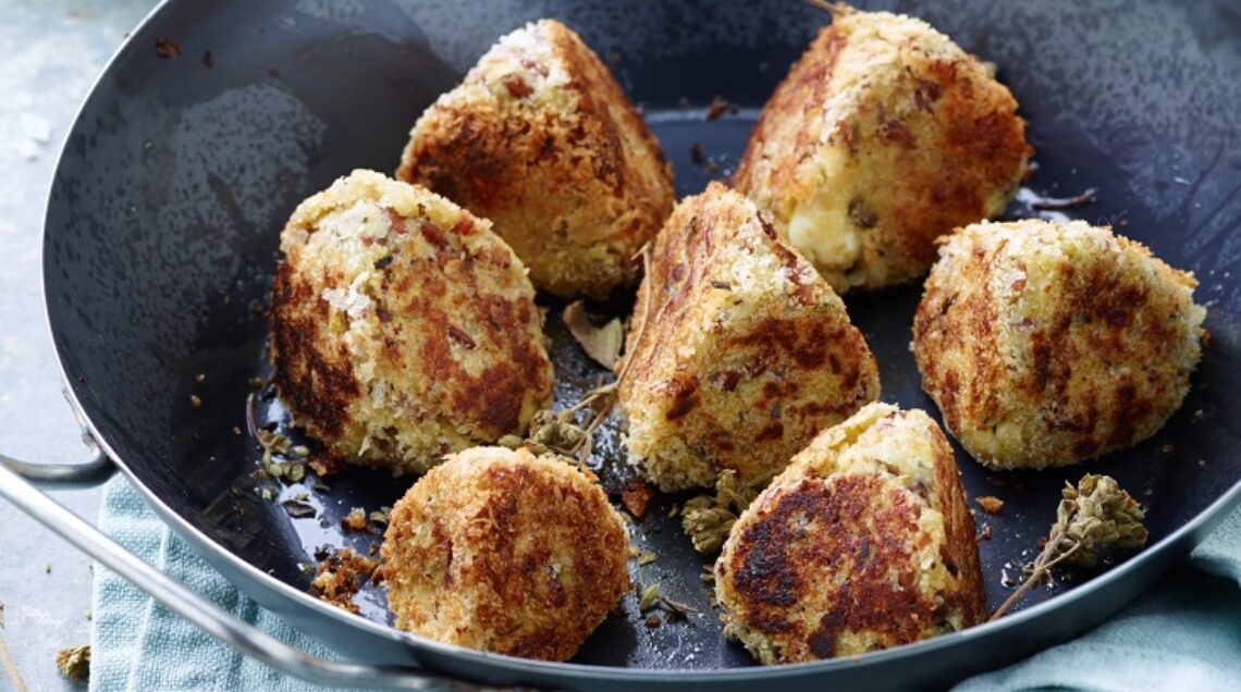 3) Impastate il tutto, poi regolate di sale e formate tante palline della dimensione di una grossa noce. Passatele nel pangrattato e rosolatele a fuoco vivo in pochissimo olio. Servitele calde.