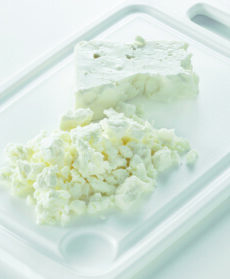 2) Sciacqua la feta sotto l'acqua corrente per eliminare l'eccesso di salamoia, asciugala tamponandola con carta assorbente da cucina e sbriciolala con le mani.