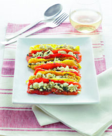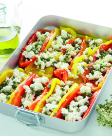6) Condisci la teglia di peperoni con la marinata e cuocili coperti in forno caldo a 180°C per 20 minuti. Scoprili e prosegui la cottura per altri 20 minuti.