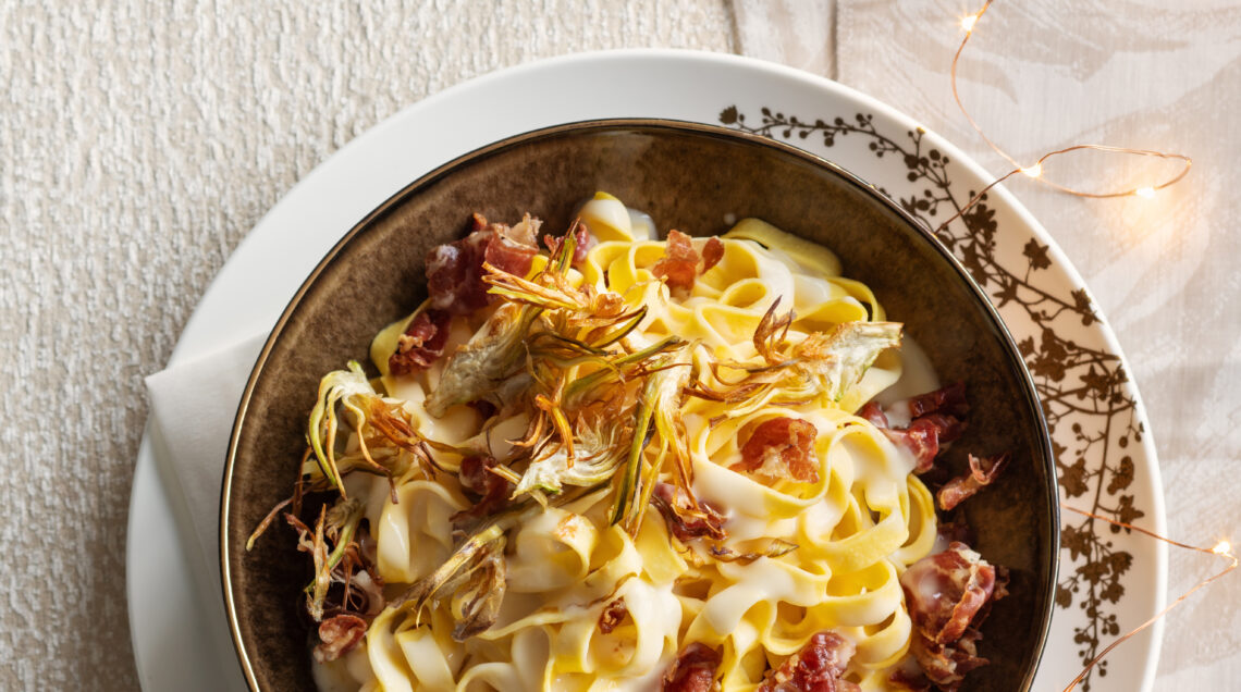 3) Nel frattempo lessate le tagliatelle in abbondante acqua salata, scolatele lasciandole umide e conditele con la fonduta di castelmagno. Spolverizzatele con la coppa croccante e i carciofi fritti, profumate con una generosa macinata di pepe.