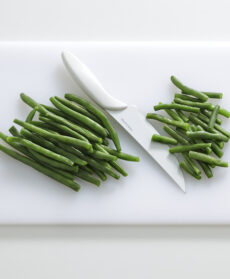 Lavate le patate senza sbucciarle, tagliatele a rondelle, scottatele per 3-4 minuti in acqua bollente e scolatele. Lavate i fagiolini, sbollentateli per 2 minuti in acqua salata, scolateli e tuffateli in acqua e ghiaccio per fermare la cottura; sgocciolateli, spuntateli, privateli del filo e tagliateli a metà nel senso della lunghezza (se sono grossi, dividi ancora le metà in due).