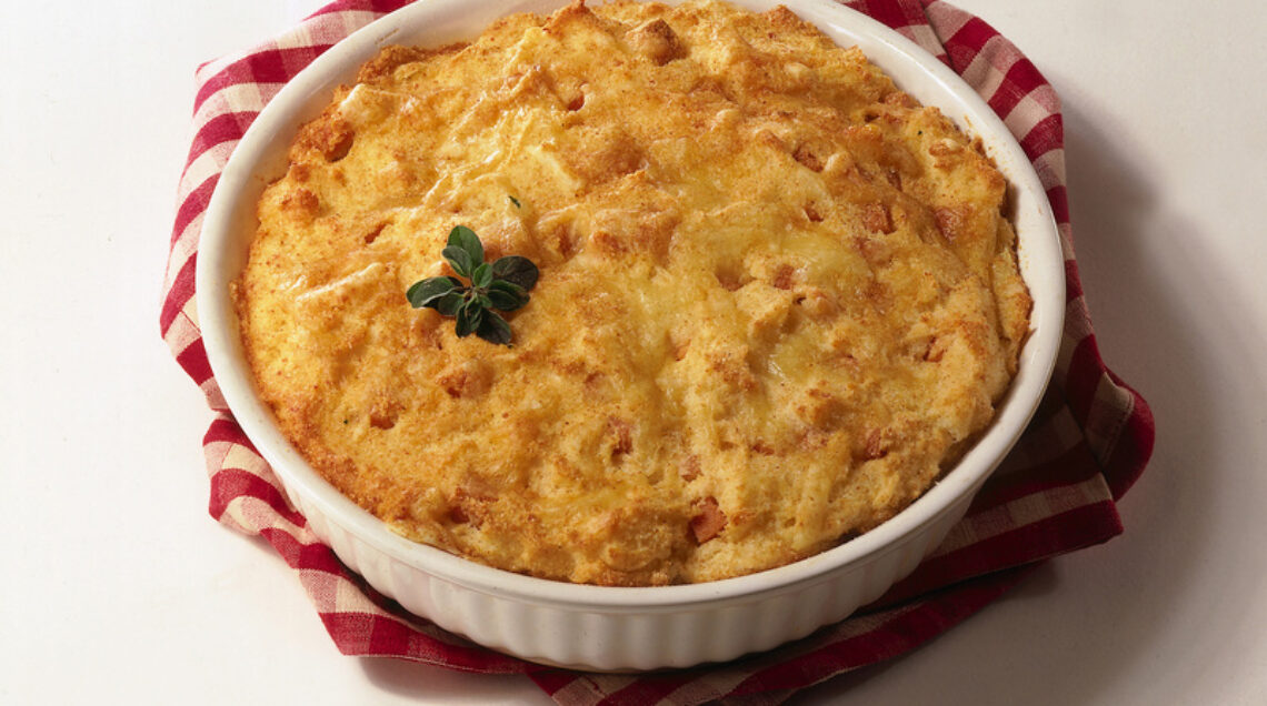 2) Incorpora al composto 3 albumi montati a neve e metti il tutto in una pirofila. Cospargi di pangrattato e metti in forno caldo a 180° per mezz'ora circa. Gusta questo piatto subito, oppure anche tiepido.