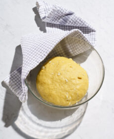 Mettete l'impasto in una ciotola infarinata, copritelo con un telo e fatelo lievitare in luogo tiepido per circa 2 ore.