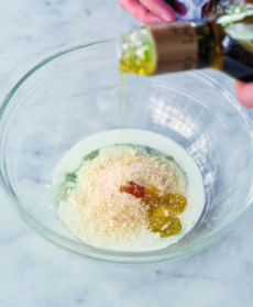 Sgusciate le uova in una ciotola poi unite latte e parmigiano. Aggiungete un pizzico di sale e di pepe e poco olio e sbattete con una forchetta.