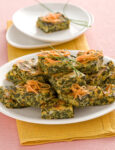4) Completa e cuoci. Versa il composto in una pirofila di 18x24 cm oliata e rivestita con pangrattato. Taglia le zucchine rimaste a bastoncini, scottale in acqua in ebollizione per 2-3 minuti, scolale, raffreddale e disponile sulla superficie dello sformato. Cuoci in forno caldo a 180° per circa 40 minuti. Servi lo sformato di zucchine tiepido o freddo.