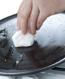 È un padellino in ferro o antiaderente dai bordi bassi o un'apposita piastra che non ha bisogno di essere imburrata: incisa con centri concentrici permette alla pastella di cuocere senza attaccarsi.