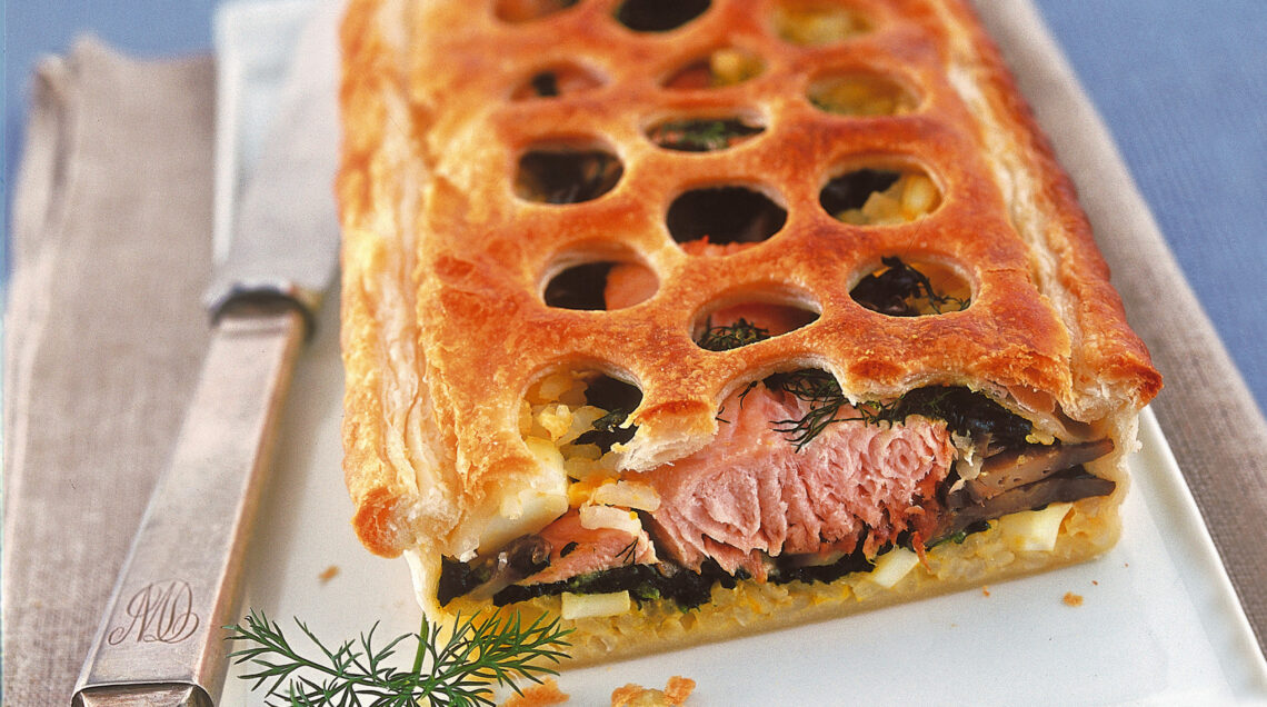 Il koulibiac è una torta salata russa, tipicamente preparata con pesce e riso. La sua caratteristica sono i fori praticati prima di essere cotta, che servono per permettere al vapore di uscire durante la cottura e di non rompere la pasta sfoglia.