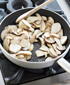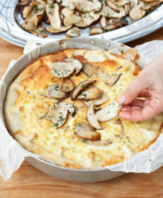 Mettete la teglia in forno caldo a 180° e cuocete per 15-20 minuti; appena il ripieno si sarà rappreso, distribuite sulla superficie i funghi rimasti e rimettete in forno per una decina di minuti, finché la pasta sarà dorata e leggermente croccante.