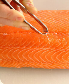Priva il salmone delle eventuali spine rimaste nella polpa e taglialo a fette sottili, come se fosse un carpaccio.