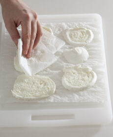 Sgocciola la mozzarella, tagliala a fette sottili e asciugale bene, tamponandole con carta da cucina. Riduci allo stesso modo anche la scamorza. Pulisci il basilico con un telo umido e sfoglialo.