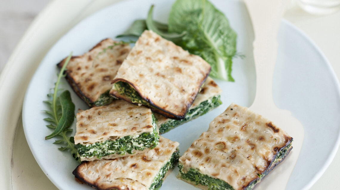1 Pulite le erbe, sciacquatele e fatele appassire in un tegame a recipiente coperto. Lasciatele intiepidire, poi strizzatele bene e tritatele piuttosto finemente. Lavorate la ricotta in una ciotola con le erbe tritate, l'uovo e il parmigiano, poi salate e pepate. Fate ammorbidire il pane azzimo nell'acqua a temperatura ambiente per 3-4 minuti.