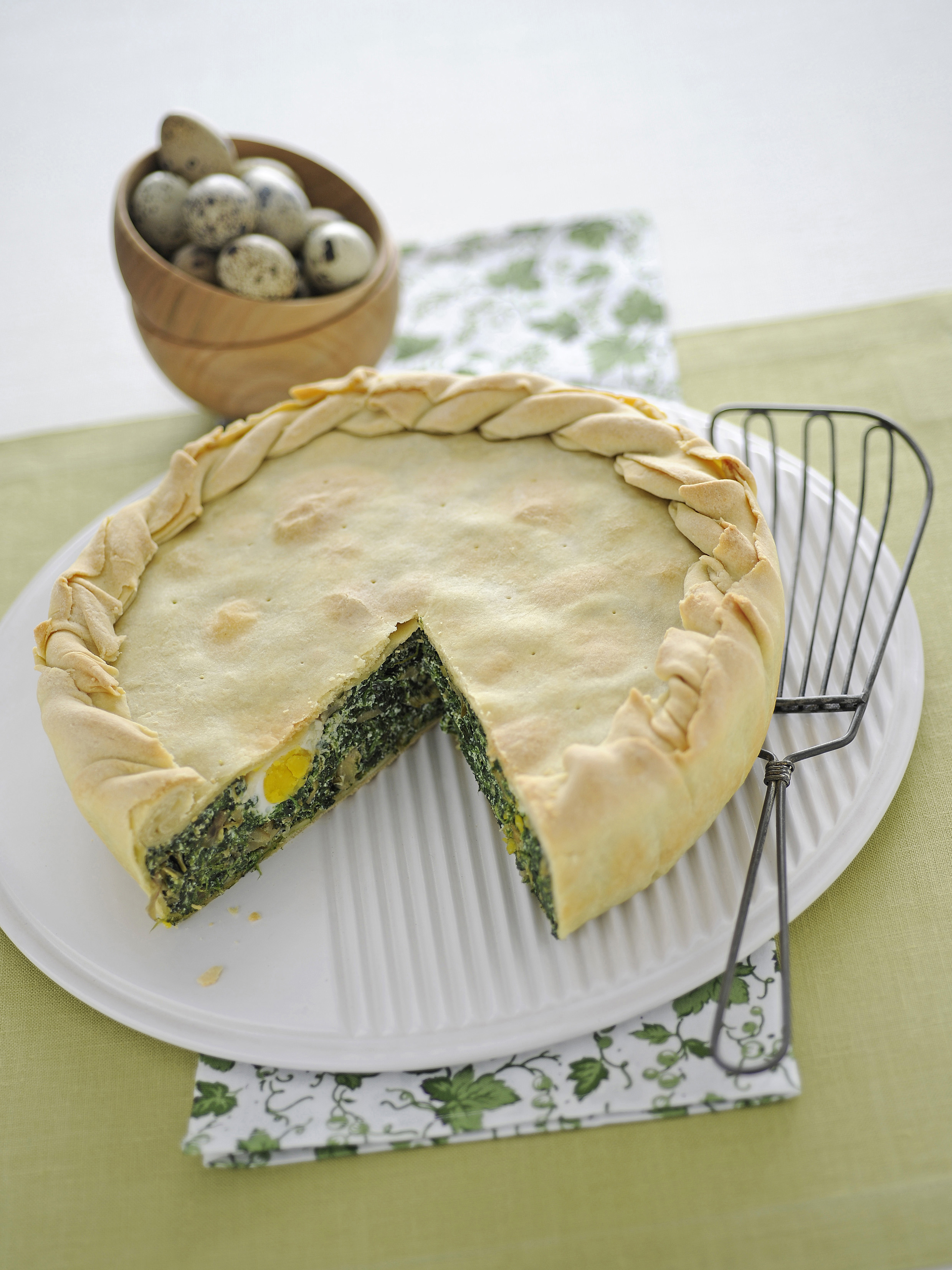 3) Bucherella la torta pasqualina con i rebbi di una forchetta e cuocila in forno caldo a 180° per 40 minuti.